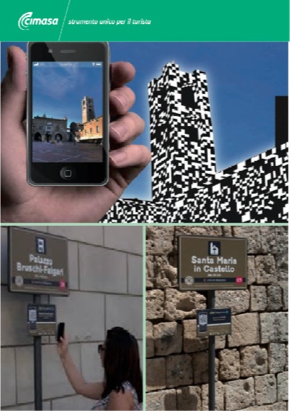 Attraverso la piattaforma Cimasa® sarà quindi possibile fornire un servizio immediato di visualizzazione e consultazione dei siti storici, culturali archeologici visitati, dotati di apposita targa riconoscitiva “Palina Cimasa” ( vedi allegato foto ) ciascun sito storico censito sarà dotato di una targa metallica Cimasa digitale con QR CODE perfettamente integrato allo stile ritenuto più opportuno da applicarsi a nostra cura nelle immediate vicinanze di ogni sito oggetto di interesse.